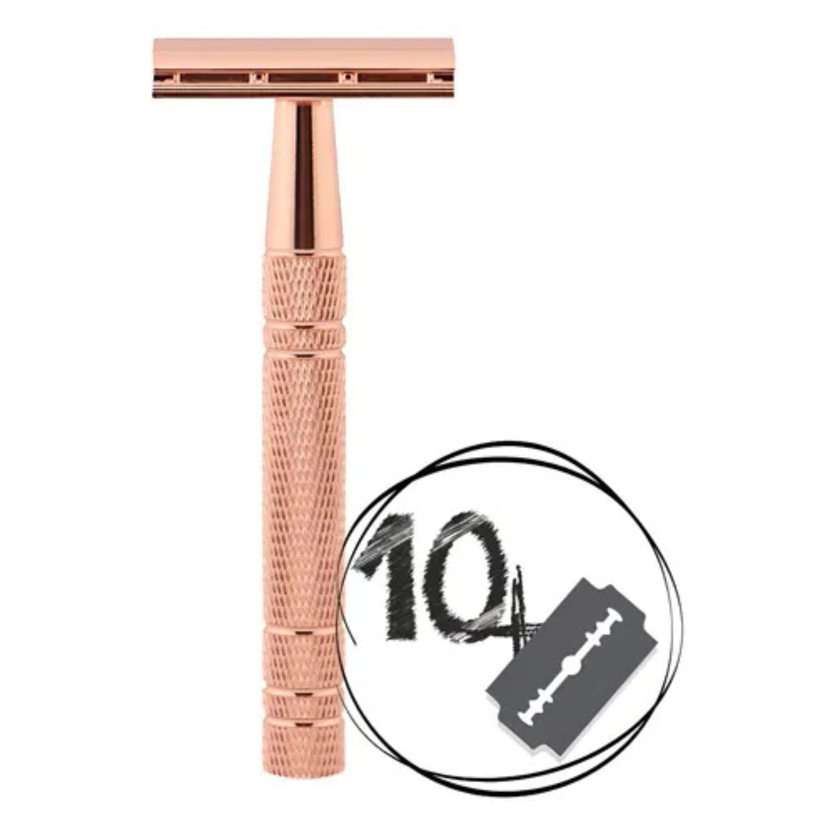 Incluye 10 cuchillas de acero inoxidable de alta calidad, resistentes a la corrosión y seguras, para que disfrutes de un afeitado preciso desde el primer día.
