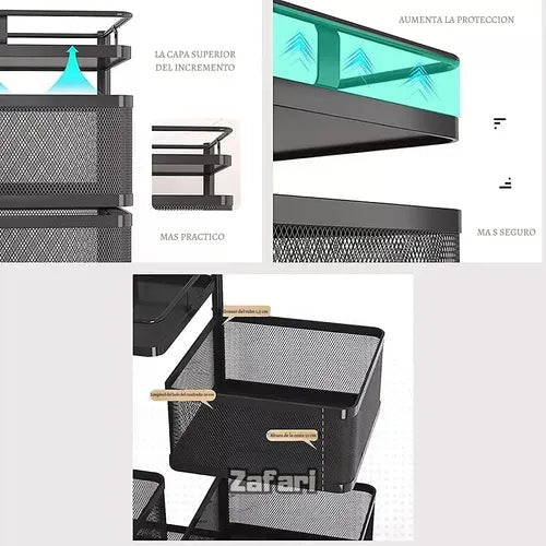 🚿 Carrito de Cocina con Cestas Giratorias y Ruedas 360°