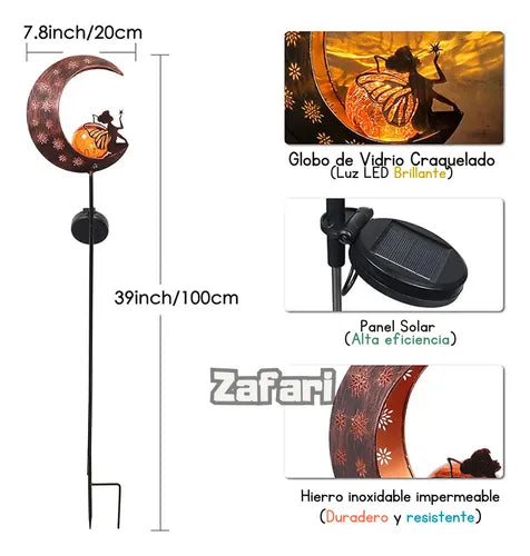 Su diseño en forma de luna con detalles de hada aporta un aire fantástico y delicado, ideal para jardines, balcones o rincones especiales que quieras resaltar.