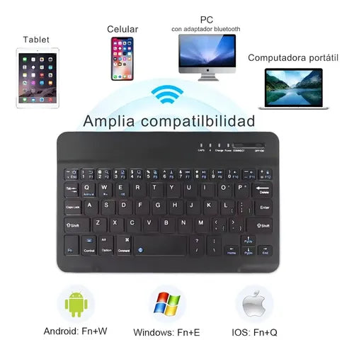 Escribe con comodidad en cualquier lugar gracias a este teclado inalámbrico compacto y elegante, diseñado para tablets, móviles y computadoras con una conexión Bluetooth estable y confiable.