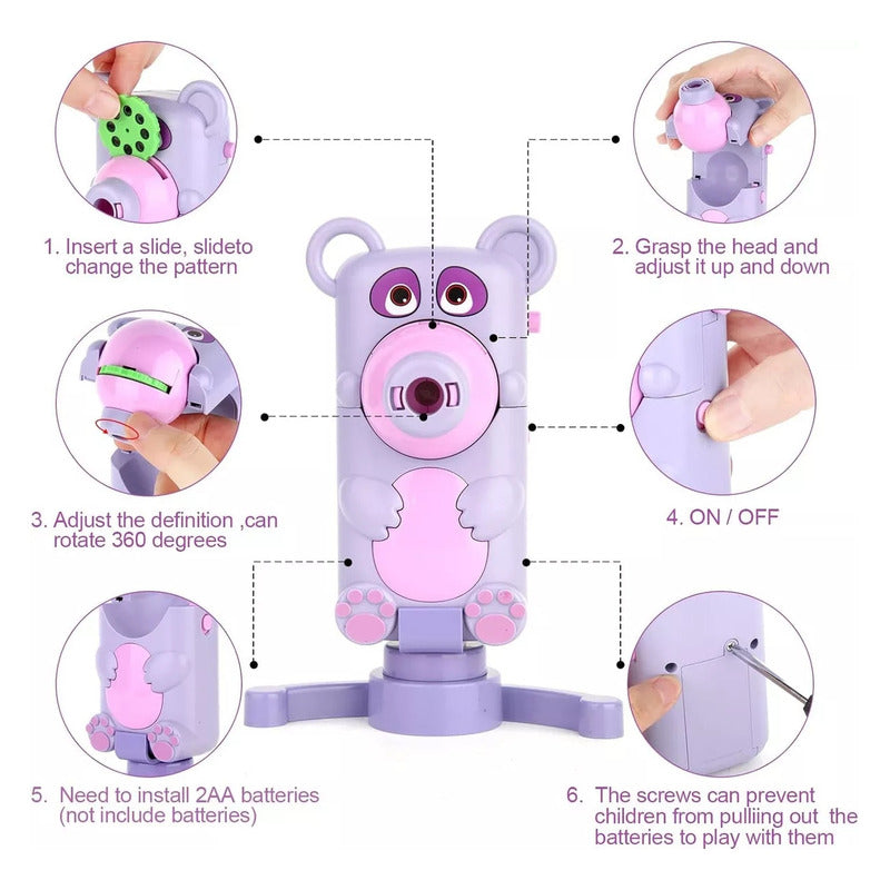 Despertá la creatividad de los más pequeños con este encantador proyector de dibujos con forma de oso, diseñado para transformar cada momento en una aventura artística. Ideal para juegos en casa, actividades escolares o momentos de relajación creativa.