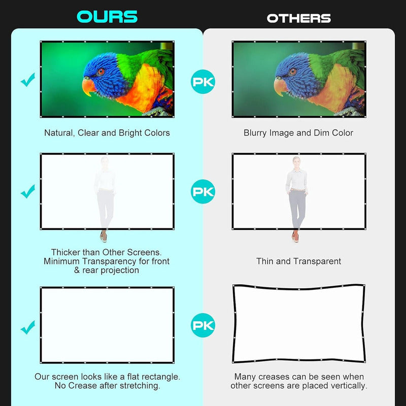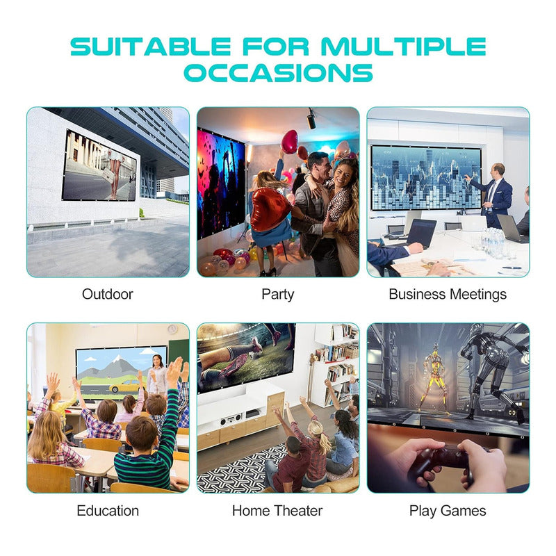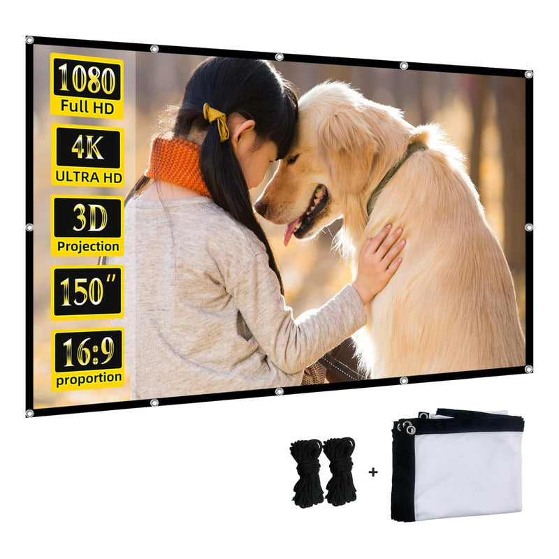 Lleva tus proyecciones al siguiente nivel con nuestra Pantalla de Proyector de 150 pulgadas, ideal para ver películas, jugar videojuegos, compartir presentaciones o disfrutar de eventos deportivos en gran formato. Perfecta para interiores y exteriores. 🏡🌌