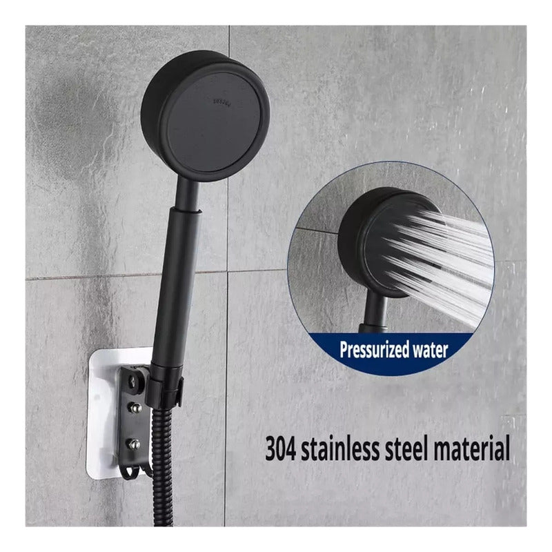 Cabezal De Ducha Presurizado Negro, 100% Acero Inoxidable