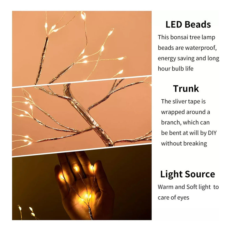 Con ramas flexibles que puedes moldear a tu gusto, esta lámpara te invita a crear tu propia obra de arte. Añade fotos, pequeños adornos o deja que brille por sí sola. ¡Ideal para personalizar tu habitación, sala o espacio de trabajo!