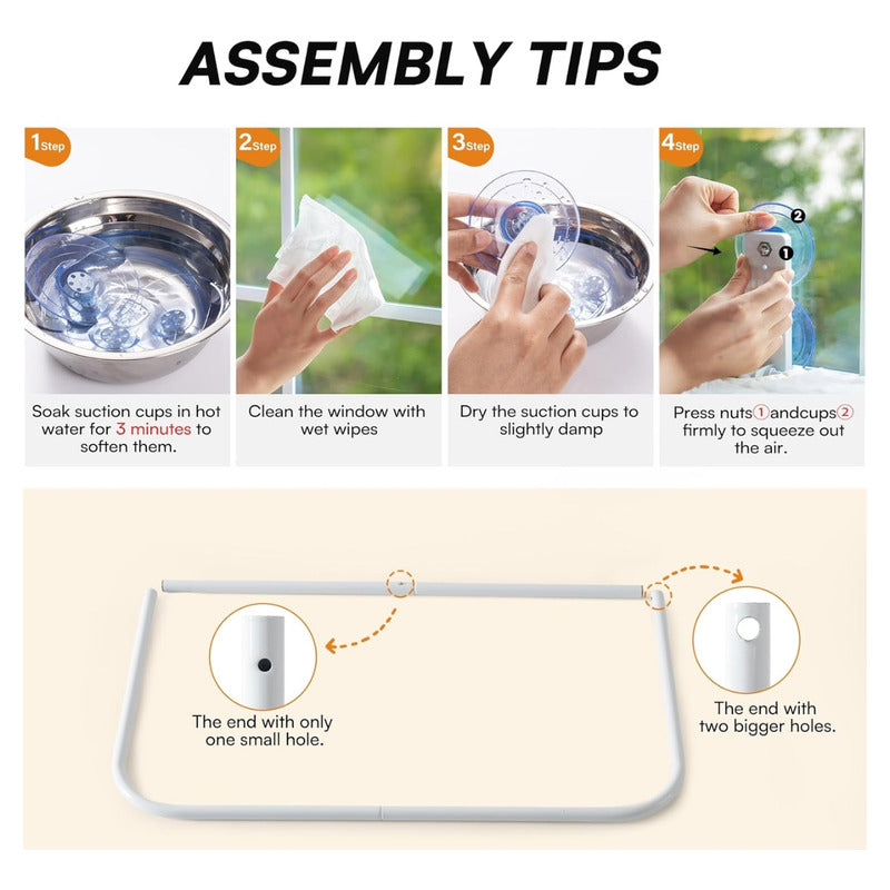 Fabricada con tubos de acero inoxidable y ventosas de grado industrial, soporta hasta 40 libras con total estabilidad. Ideal incluso para gatos grandes o muy activos.