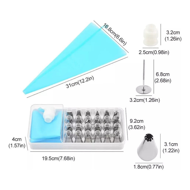 Desde flores delicadas hasta bordes definidos y diseños profesionales, cada boquilla te ofrece una nueva forma de decorar. Ya seas principiante o experto, este set es tu aliado perfecto en la cocina.