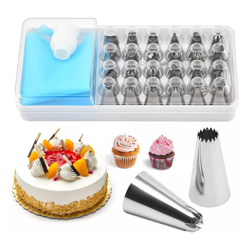 Lleva tus habilidades de decoración al siguiente nivel con este completo set de 24 boquillas de acero inoxidable. Perfecto para dar vida a tus ideas más dulces, este kit incluye todo lo que necesitas para crear cupcakes, tortas y postres con acabados espectaculares.