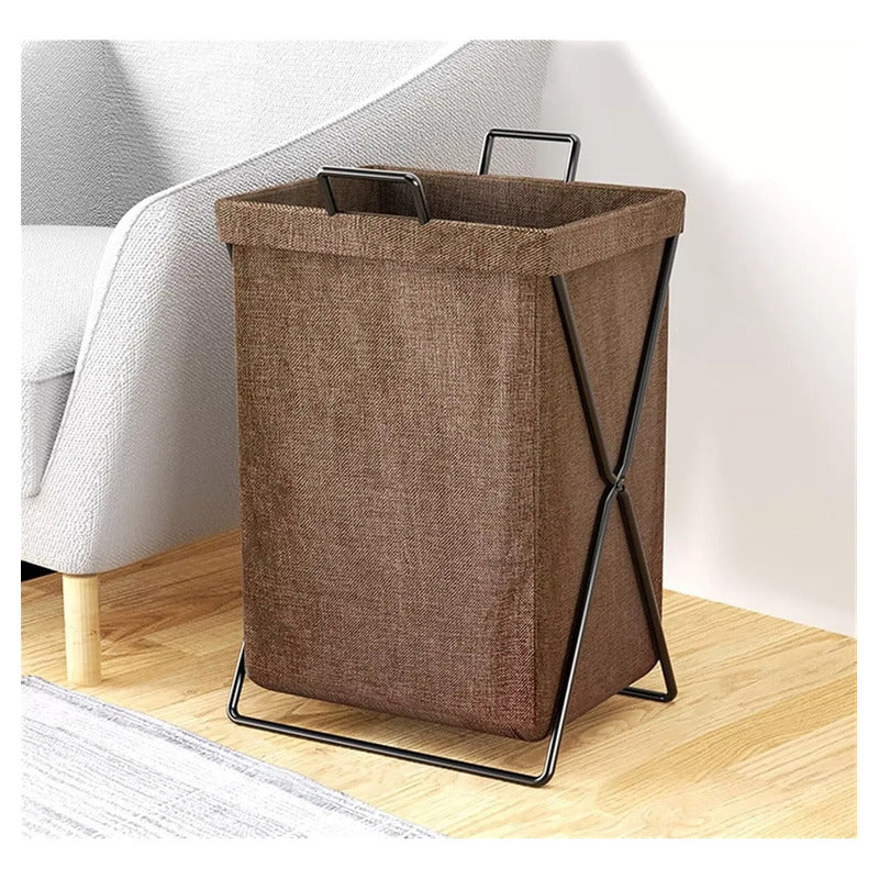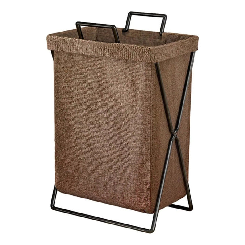 Cesta De Lavandería Con Marco De Acero, Resistente Y Útil Marrón Liso
