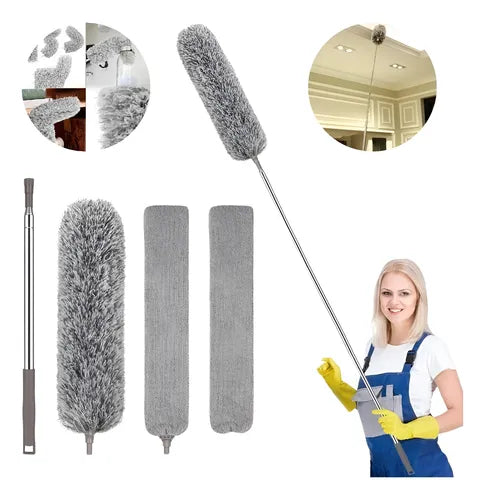 Gracias a su mango extensible de acero inoxidable, podrás limpiar techos, ventiladores y estanterías altas sin esfuerzo ni escaleras, llegando donde otros plumeros no pueden.