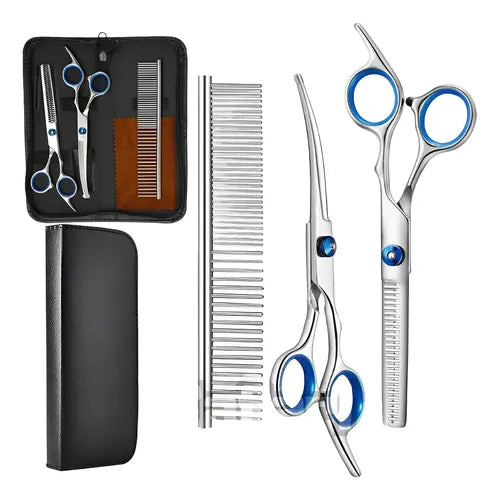 Cuida la apariencia de tus mascotas con este set de tijeras diseñado para ofrecer precisión, comodidad y seguridad en cada corte. Una herramienta ideal para mantener a perros, gatos y más siempre prolijos y felices.
